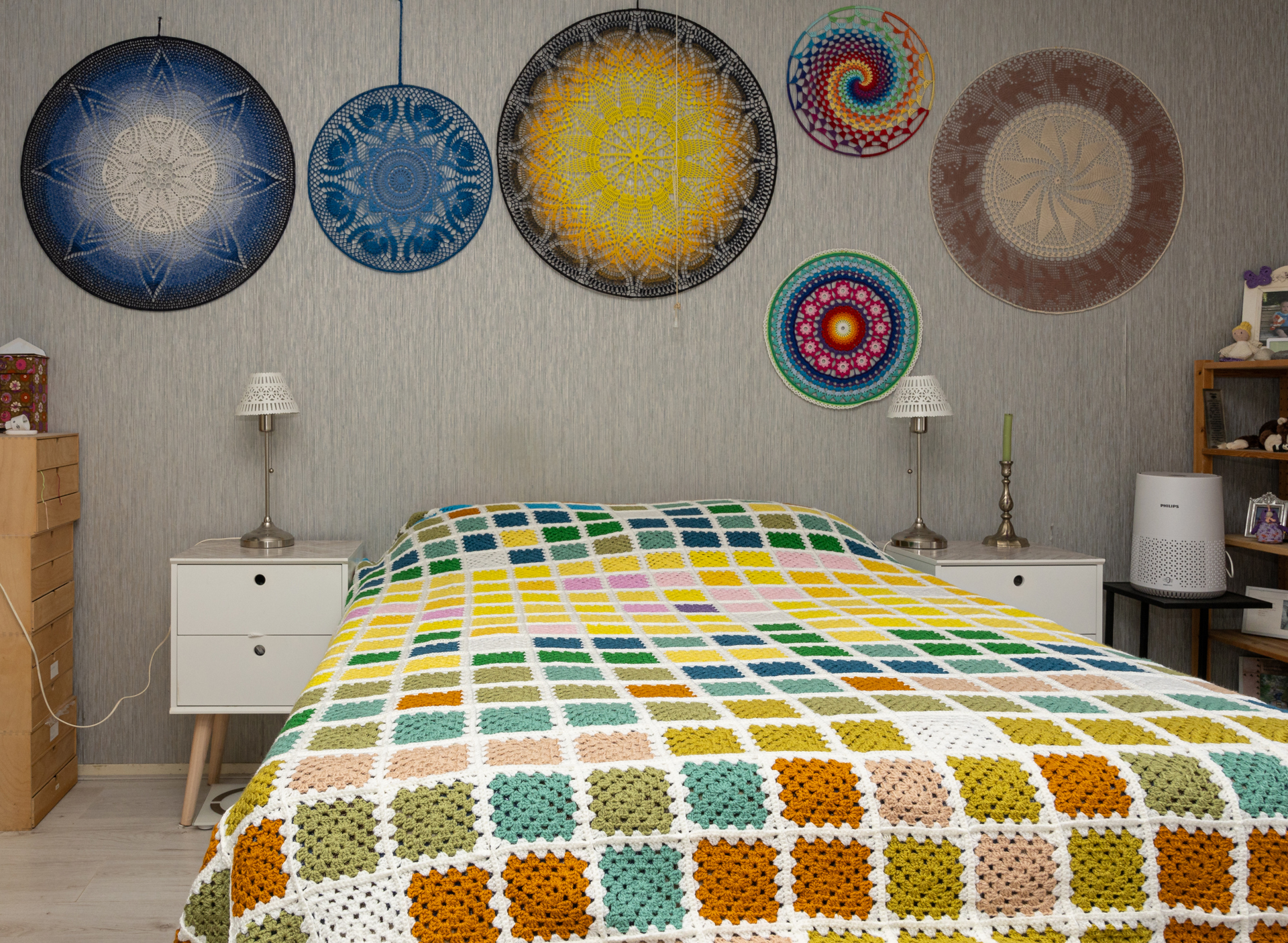 Astrid’s enthousiasme voor haken beperkt zich niet tot haar eigen woonkamer. Elke week komt ze samen met een vriendin. “Dan koken we voor elkaar en doen we iets creatiefs. Elkaar inspireren en samen bezig zijn, dat is zo leuk.” Astrid hoopt anderen te stimuleren om ook met haken te beginnen. “Als je het eenmaal doorhebt, is het zó ontspannend. En je kunt iets maken dat echt uniek is, gewoon met een bolletje garen en een haaknaald.”