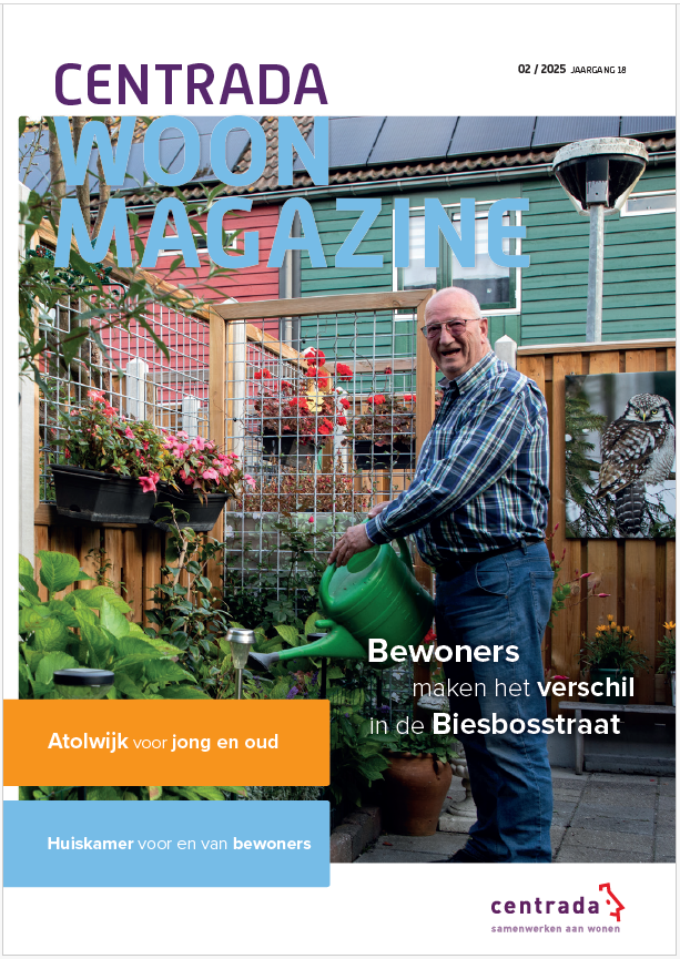 Huurt u een woning van Centrada? Dan valt deze week ons bewonersblad weer bij u op de deurmat. In deze nieuwe editie leest u onder andere over onze plannen voor de wijkvernieuwing van Atolwijk en over de ontmoetingsruimte voor de bewoners van het nieuwe woongebied Hooghe Bomen. Verder een interview met Groene Ambassadeur Cor over de opknapbeurt in de Biesbosstraat. En ook aandacht voor brandveilig wonen in wooncomplexen en een oproep aan huurders die hun mening willen geven. Op de achterpagina dit keer een kleurplaat voor de allerkleinste huurders.